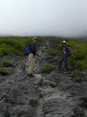 記録  須走口六合目発8:10〜六合小屋9:18〜滑沢10:07〜吉田口六合目10:17
