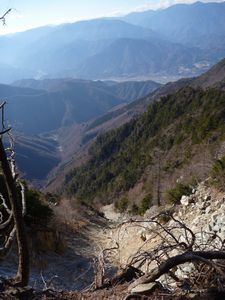 平成24年1月9日 快晴  湯の奥部落発8:15→五老峰着11:13→大ガレの頭着18:18→毛無山14:10→麓15:46
