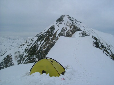 小さなスコップ一本では作業がはかどらず、隣のテントからもう一本借りて設置スペースを掘り下げる。楽しみにしていた夜の宴だが、のんべえ吉本さんでさえあまり進まず、早々に寝ることにした。夜空は満天の星。明日は下るだけなので気が楽だ。